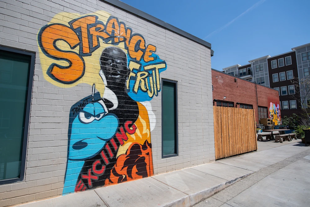 Known as the historic arts district in Charlotte, there’s art almost everywhere you look in NoDa. Short for “North Davidson,” NoDa is home to art and artists from all walks of life, craft beer, eclectic shopping and top-notch restaurants. A few murals to look out for: Osiris Rain’s “Bloom” at the intersection of East 35th and N Davidson, The Southern Tiger Collective’s Dolly Parton love is love wall on the side of The Blind Pig and William Puckett’s “Als ich Chan: A Tribute to NoDa” on the wall of Jack Beagle’s.